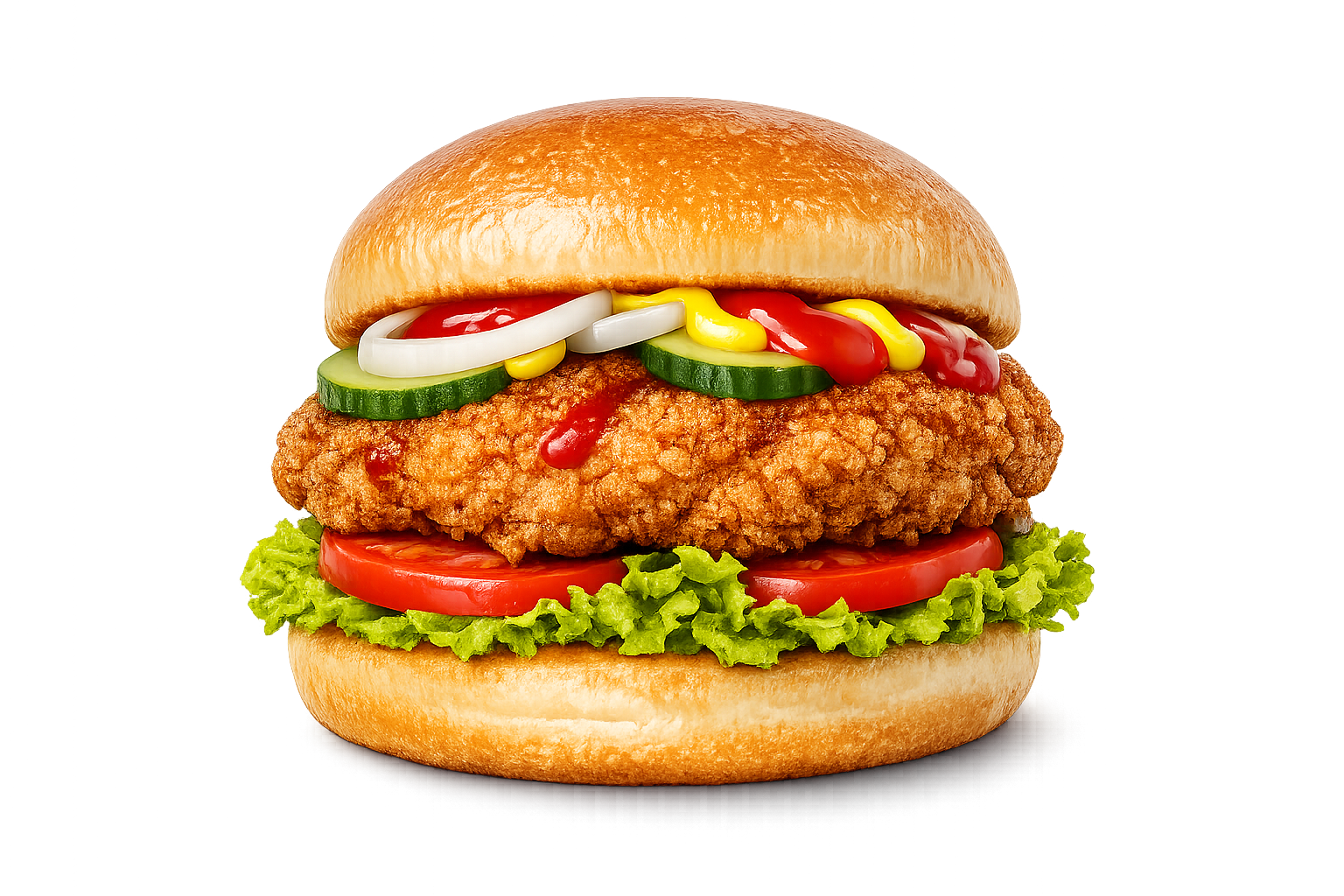 (rántott csirkemell, salata, pari.ubi.hagyma, mustar, ketchup)