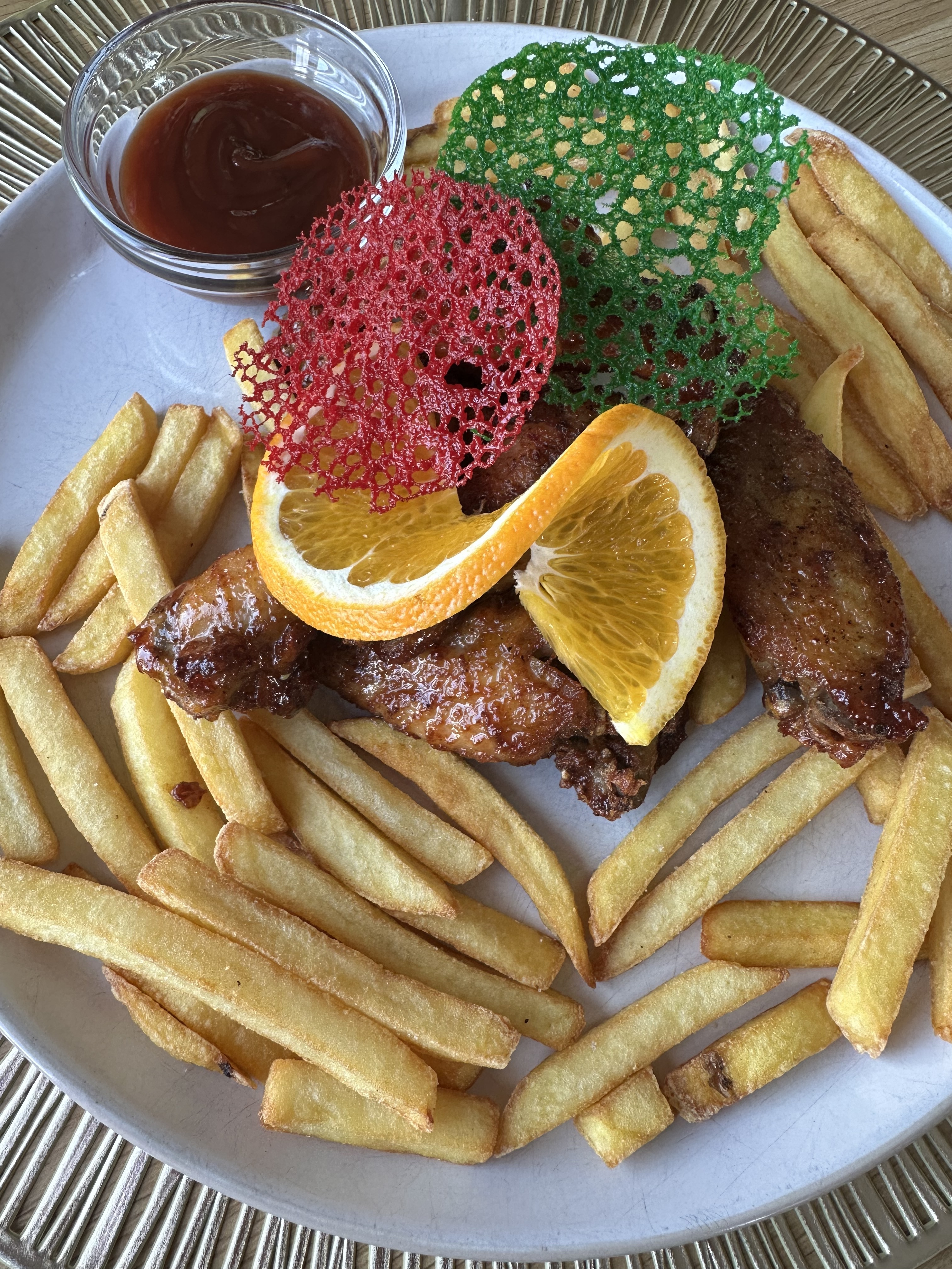 Fűszeres csirkeszárnyak hasábburgonyával BBQ szósszal